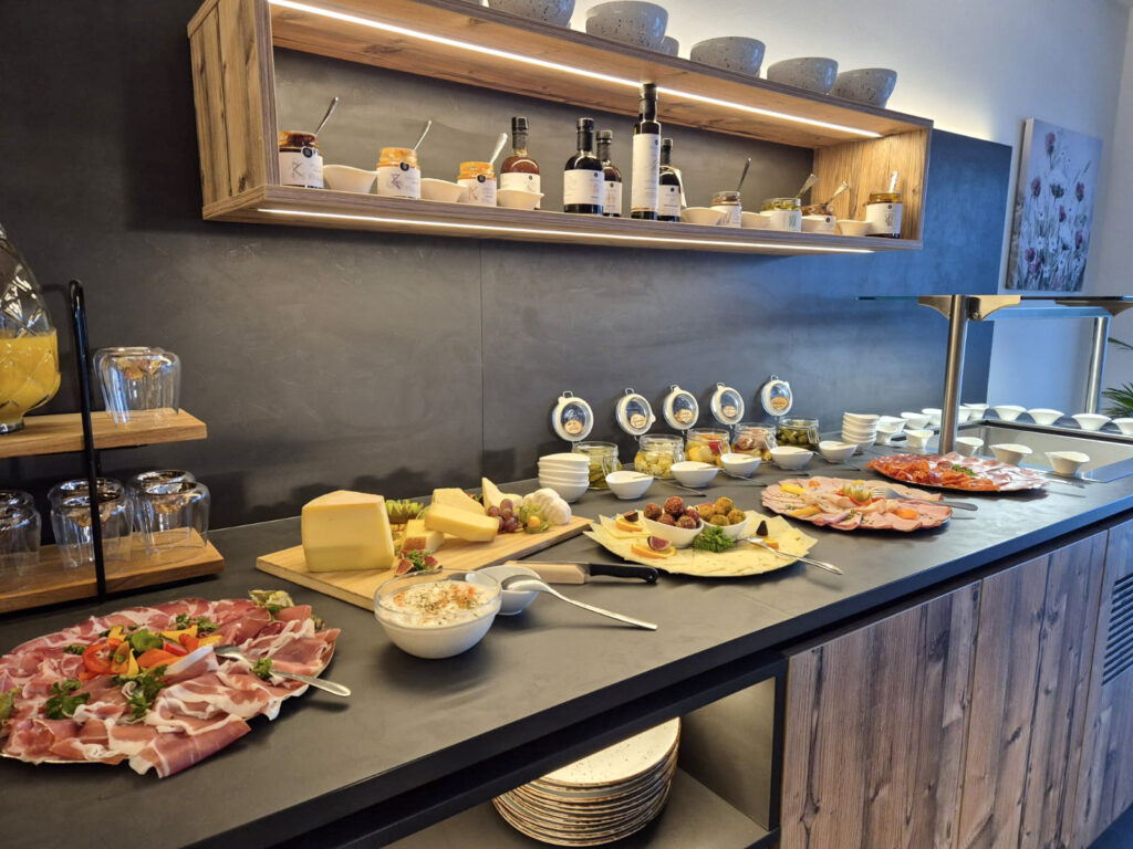A comfortable king-size bed (180×200 cm), a cozy sitting area, and a practical desk create the ideal setting for both relaxing and active vacations. The modern bathroom is wheelchair accessible and has a step-free walk-in shower – well thought-out, functional, and comfortable.