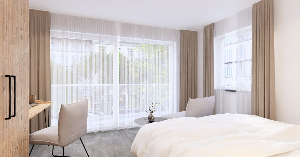 Stilvoll wohnen mit Ausblick: Unser Doppelzimmer Kaiserblick überzeugt durch Großzügigkeit, hochwertige Ausstattung und einen traumhaften Blick auf die umliegende Bergwelt – perfekt für Gäste, die Komfort und Atmosphäre gleichermaßen schätzen.
